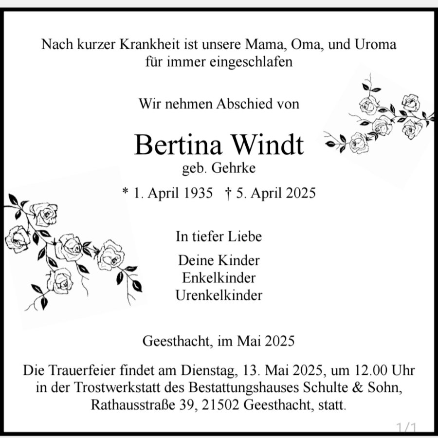 Bertina Windtgestorben am 5. April 2025